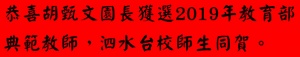 恭喜胡甄文園長獲選2019年教育部典範教師,泗水台校師生同賀。