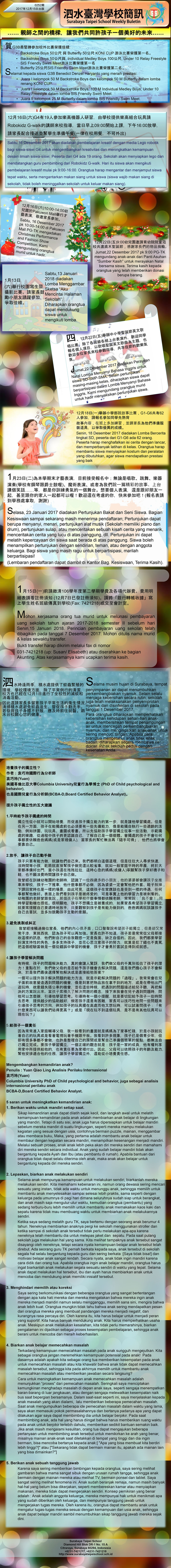簡訊_ 2017.09.15 – 2017.09.15 STS Weekly Buletin 02.親師簡訊 PDF Download 學務處活動宣告: 9月16日早上8:30,舉行本學期的班親座談會,歡迎各位家長蒞臨參加。 10月7日,第23屆校慶運動會,邀請G2的家長一同來參加親子接力賽,近日將會發下邀請通知,調查G2家長人數,快來報名啊! AW November 21, 2017 1 min read 0